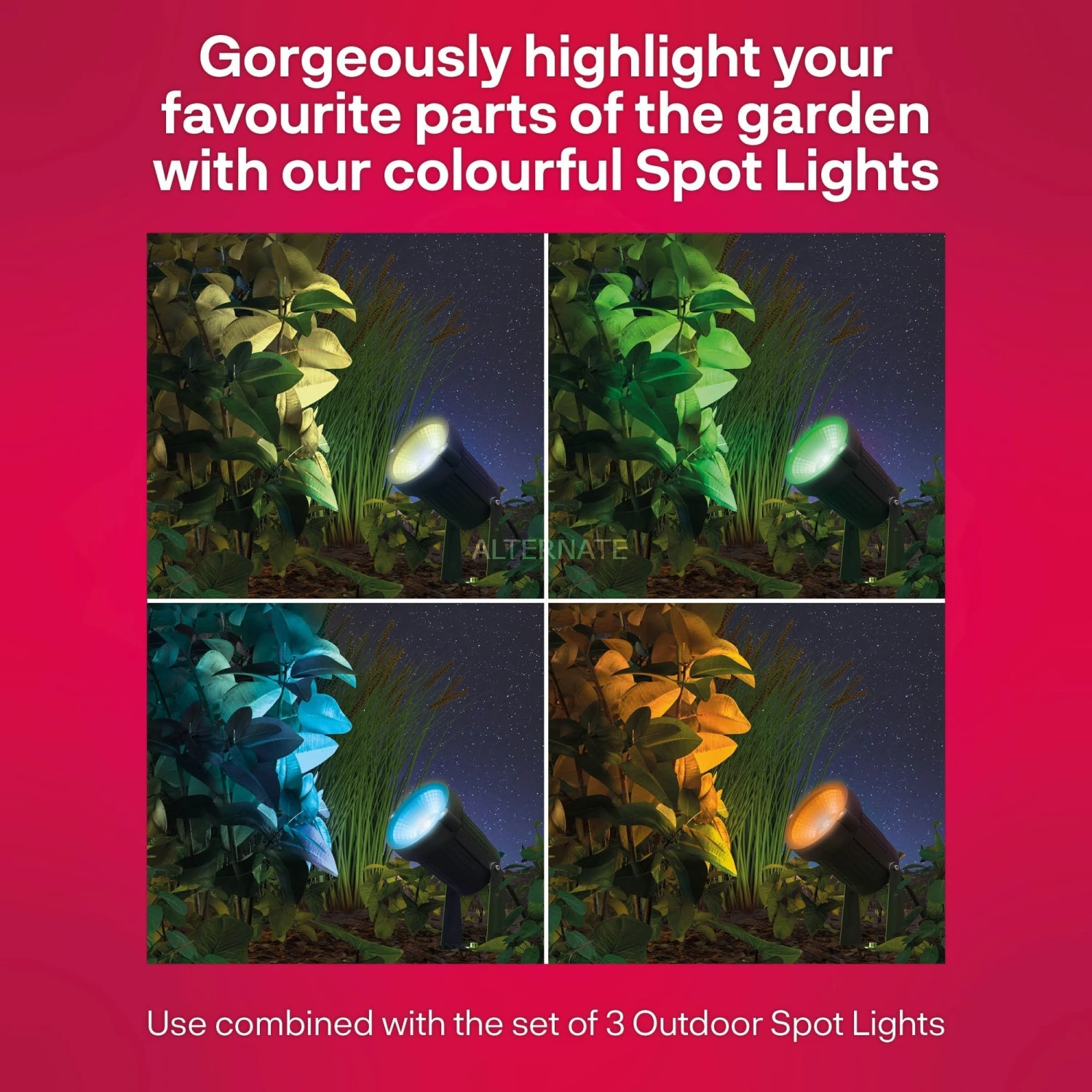 Die Outdoor Smart Spot Colour von INNR sind dekorative Spots für den Einsatz im Garten oder auf der Terrasse. Sie erzeugen ein warm- bis kaltweißes oder bei Bedarf farbiges Licht mit bis zu 230 Lumen und lassen sich per App oder Sprache steuern. Dieses Set enthält eine Spot-Leuchte, die als Erweiterung für eine bereits bestehende Installation aus . Die Spots können entweder an einer Wand oder Umzäunung oder am Boden befestigt werden.
