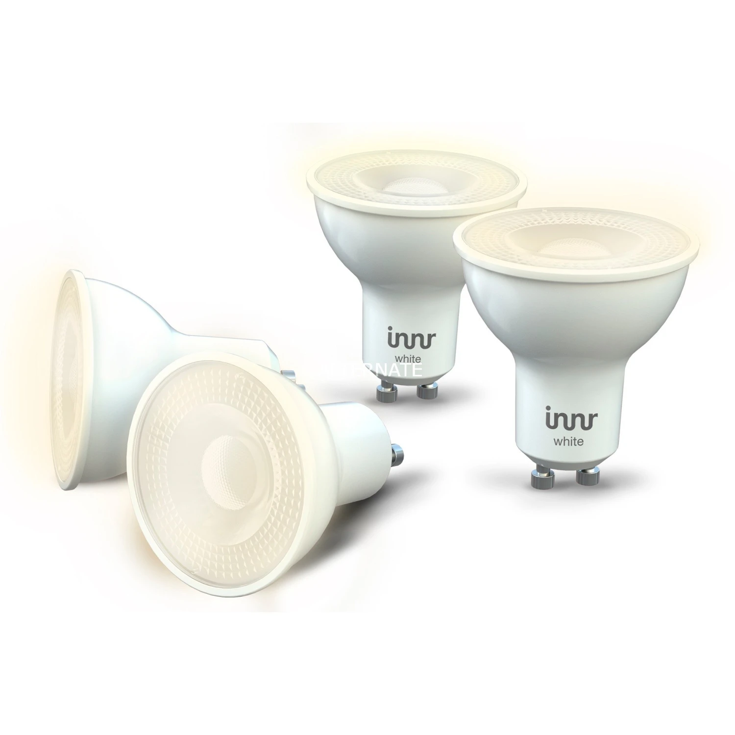 Der Smart Spot White Single Lens von INNR ist eine per Zigbee-Protokoll steuerbare LED-Lampe mit Spot-Formfaktor und GU10-Sockel. Sie kann über die die INNR-App über iOS oder Android auch aus der Ferne gesteuert werden und erzeugt ein warmweißes, dimmbares Licht mit bis zu 350 Lumen, das jeden Raum zu einer Wohlfühloase macht und vielfältige Stimmungsanpassungen erlaubt. Dabei sorgt für die einzelne Linse für ein besonders gleichmäßiges Licht. Dieses Pack enthält vier Leuchtmittel.