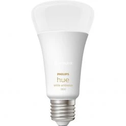 Hohe Lichtqualität, smarte Funktionen: Die Lampen der Serie Hue von Philips bringen Atmosphäre in das eigene Zuhause. Dieses Doppelpack für den Sockel E27 enthält zwei LED-Lampen, die ein warmweißes Licht erzeugen und über Bluetooth, Zigbee oder per Verbindung an eine Hue Bridge steuerbar sind. Damit lassen sich die unterschiedlichsten Beleuchtungsszenarien bis hin zu Sprachsteuerung realisieren – bei hoher Energieeffizienz und langer Haltbarkeit.