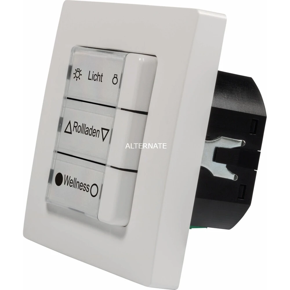 Der DuoFern Mehrfachwandtaster 230V 9494-2 ist ein Funkwandtaster zur Bedienung von DuoFern Geräten und direkt angeschlossenen elektrischen Verbrauchern. Der Funkschalter verfügt über 3 Wippen mit jeweils 2 Tasten. An jede der 3 Wippen können jeweils bis zu 8 DuoFern Funk Geräte angemeldet werden. So können mit dem DuoFern Mehrfachwandtaster bis zu 24 DuoFern Geräte in 3 Gruppen bedient werden. Der DuoFern Mehrfachwandtaster verfügt über einige praktische Funktionen wie z.B. einen aktivierbaren Tipp-Betrieb für Rollläden oder Außenjalousien. Zudem verfügt der Funktaster über eine in 4 Stufen einstellbare Beleuchtung, die das Lesen der Beschriftung bei Dunkelheit erleichtert. In Verbindung mit dem HomePilot Smart Home kann der DuoFern Mehrfachwandtaster noch individueller genutzt werden, da jeder Taste eine Szene zugeordnet werden kann. Der Mehrfachwandtaster ist nach DIN 49075 gestaltet und kann über Zwischenrahmen in alle gängigen Schalterprogramme integriert werden.