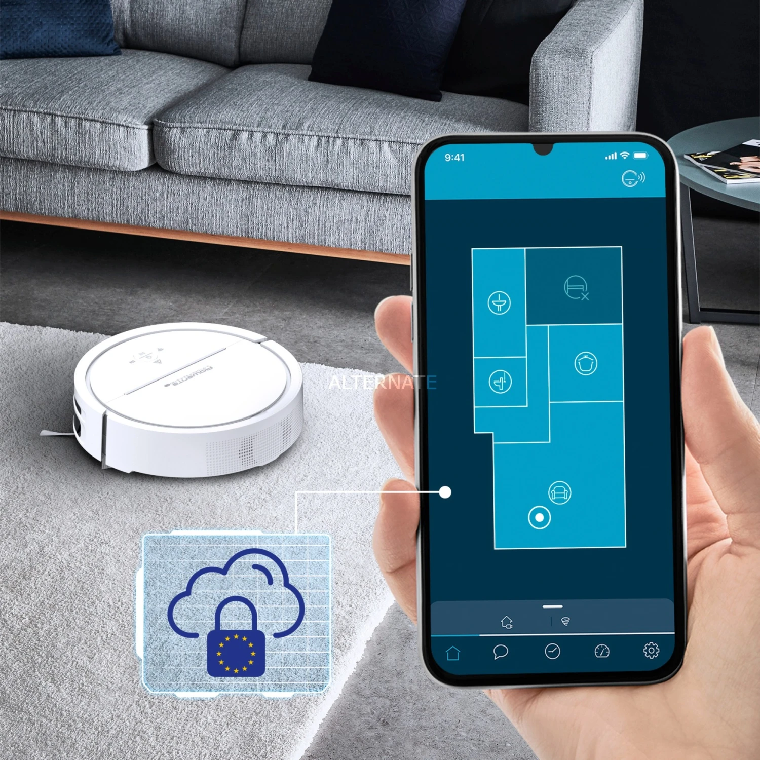 Der innovative Rowenta X-PLORER Serie 120 AI Staubsaugerroboter kommt überall hin und sorgt so für ein sauberes Zuhause. Mit seiner Laser und Kameratechnologie erkennt der Roboter auch niedrige Gegenstände. Die Hightech-Navigation mit KI-Technologie bietet eine einzigartige Personalisierung mit Empfehlungen basierend auf Gewohnheiten, automatischen No-Go-Zonen basierend auf vergangenen Reinigungen, und überzeugt mit mühelosen Reinigungsroutinen, Sprachassistenten-Kompatibilität und Smart-Home-Integration. Das einfache Home-Mapping erlaubt eine Kartierung mehrerer Räume und Etagen. Mit seinen zwei seitlichen Bürsten für Ecken und schwer zu erreichende Bereiche, der Mittelbürste für große Staubpartikel und Schmutz, dem 2700 Pa-Motor für eine zuverlässige Saugleistung und dem Aqua Power System zum Wischen sorgt der Rowenta X-PLORER Serie 120 AI Staubsaugerroboter für überzeugende Reinigungsergebnisse.